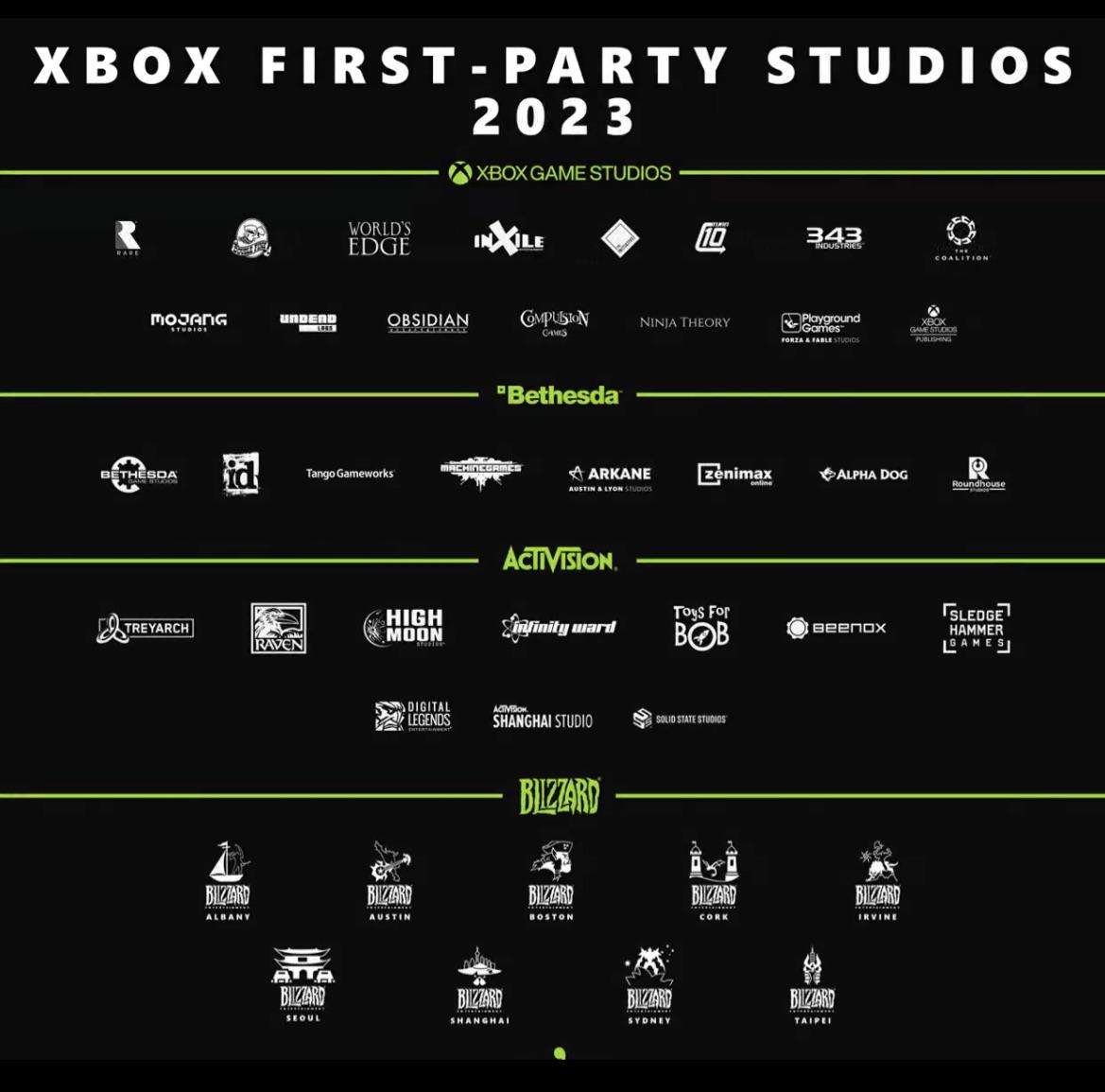 تمتلك اكس بوكس العديد من العناوين التي توفرها في كل سنه لخدمة Game Pass و لكي تتعرف على الشركات المملوكه ل Xbox فهذه صوره توضح لك كمية الشركات و الاستديوهات التي تمتلكها اكس بوكس بالوقت الحالي .